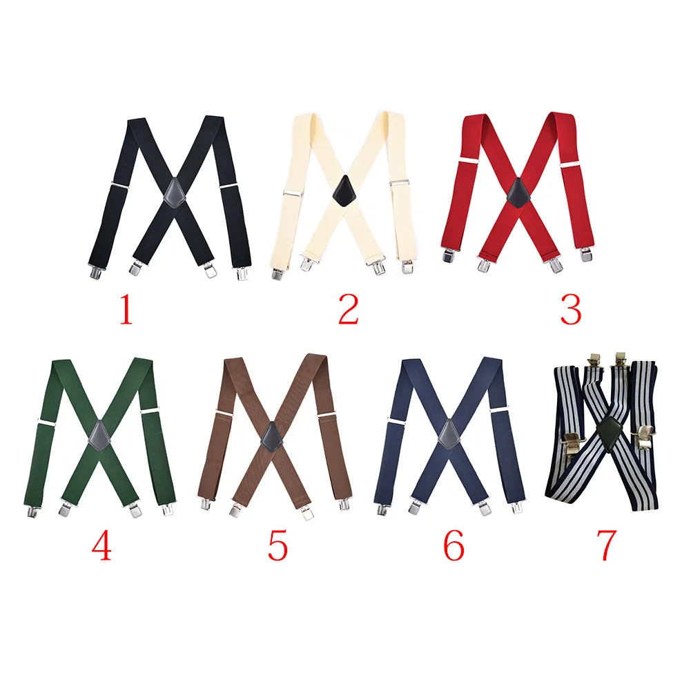 Best Price Men Suspender Solid X Back Heavy Duty Elastic Apparel Accessory Adults Swivel Hook Adjustable Braces 4 Clips
